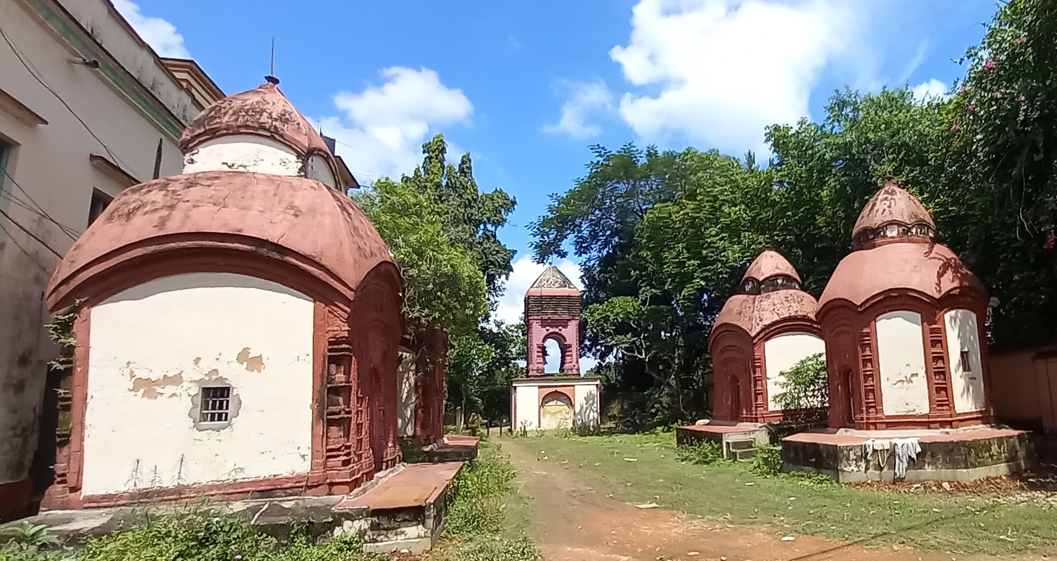 There is a cluster of temples adjacent to the Dol Mancha established by the Chowdhury family in Harishaba Para under Amad Pur Gram Panchayat in Memari Block of East Burdwan District.